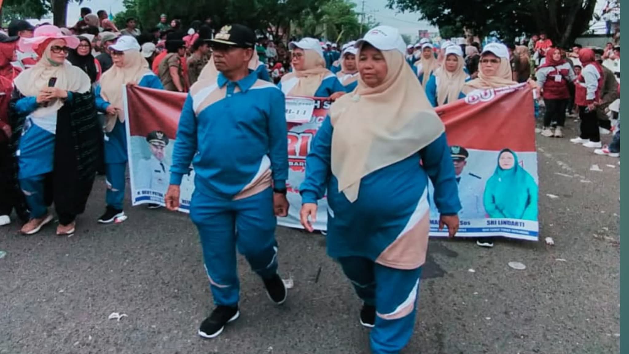 Pawai pembangunan dari kecamatan Tanah Sepenggal Lintas ini dipimpin langsung oleh camat Sulaiman.As.S.Sos