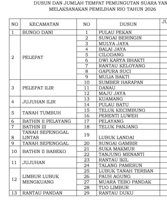 Bungonews.net, BUNGO- Sebanyak 29 Desa dikabupaten Bungo akan menggelar pemilihan Rio ( Pilrio ) Pada pertengahan 2026 ini.