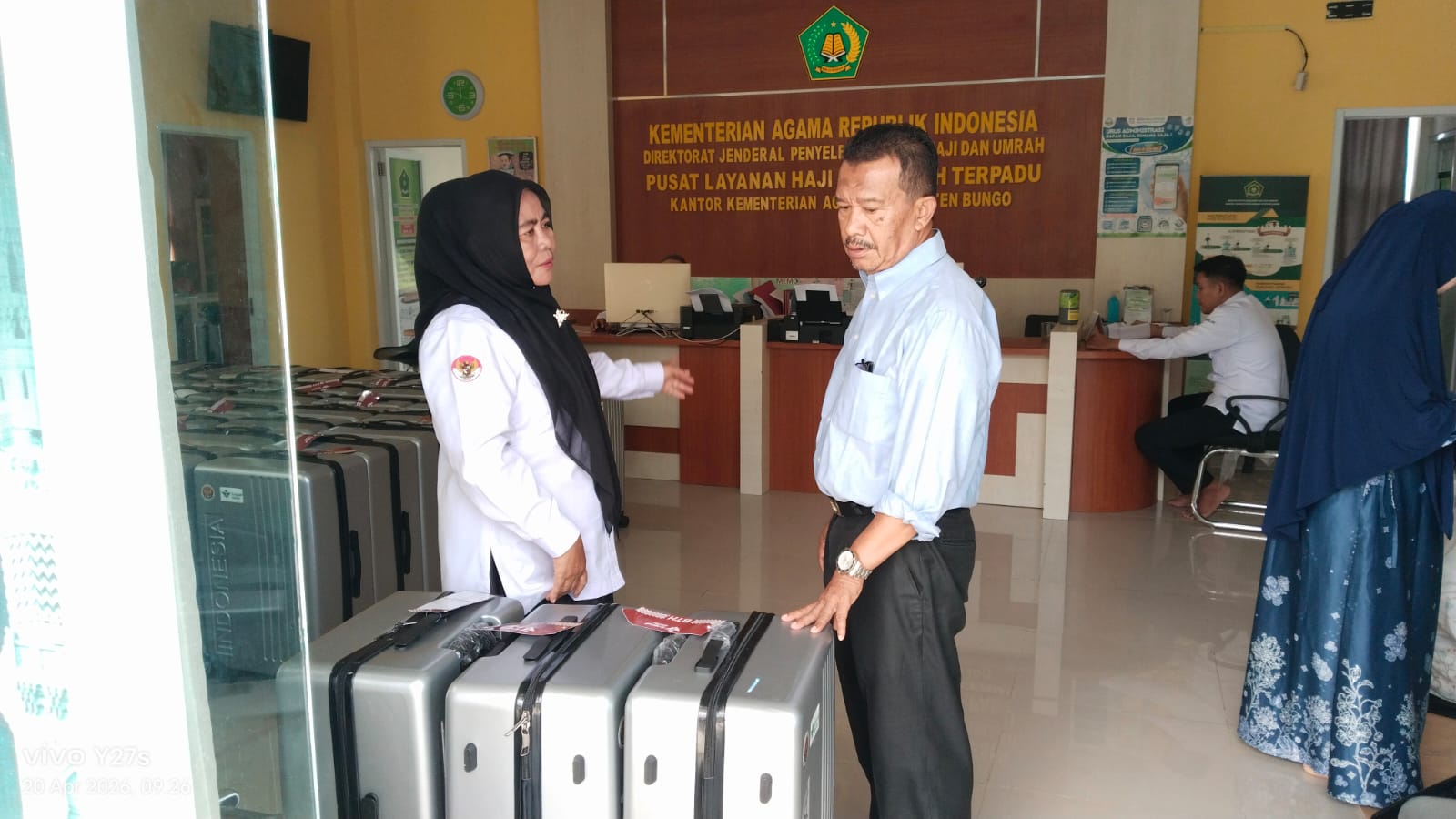 Bungonews.net,Bungo -Kantor Kementerian Haji dan Umroh (Kemenhaj) Kabupaten Bungo mulai membagikan koper ke Calon Jamaah Haji Indonesia asal Kabupaten Bungo. Koper tersebut akan dikumpulkan kembali beberapa hari jelang pemberangkatan ke asrama haji Provinsi Jambi.