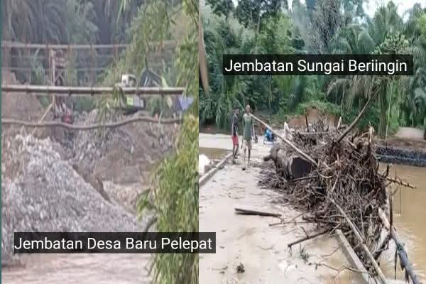 Tidak jauh beda dengan desa Baru Pelepat, satu -satunya jembatan penghubung antar desa nyaris roboh karena mobilosasi alat berat yang melintasi jembatan dan aktivitas PETI di bawah jembatan.menariknya justeru kepala kampung di desa tersebut diduga pemilik salah satu alat penyebab kerusakan jembatan tersebut seakan – akan tidak merasa bersalah dan tidak merasa takut sedikitpun