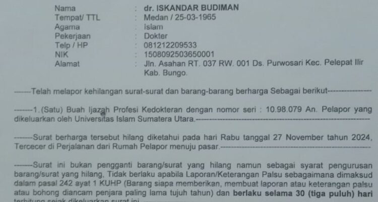 Bungonews.net, Dokter Iskandar alumni universitas islam sumatera utara kehilangan IJAZAH .ASLI Pria Selengkapnya..